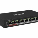 Unmanaged L2 PoE switch HikVision HiLook NS-0109P-60(B) s 8 PoE+ portova i 1 uplink portom. Uz 60 W PoE budžeta, domet do 250 m i 6 KV zaštitu od prenapona, idealan je za proširenje CCTV mreže