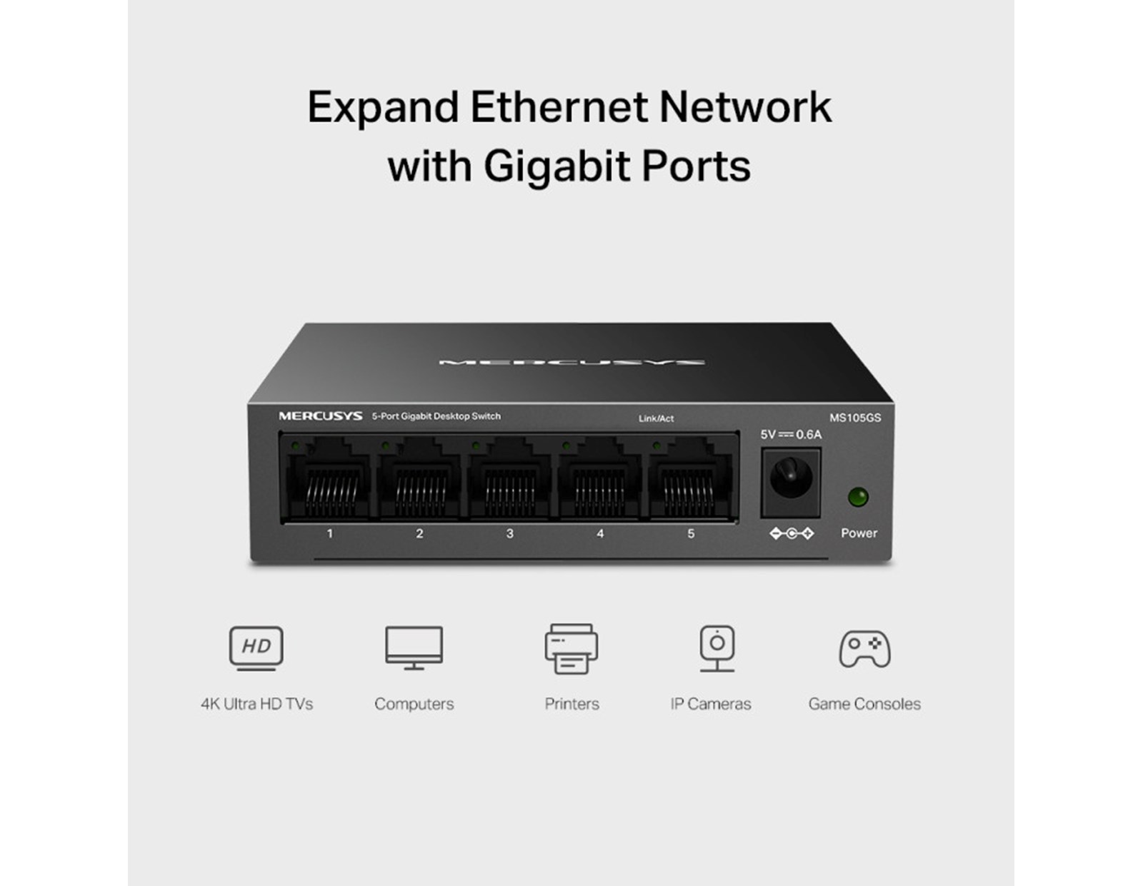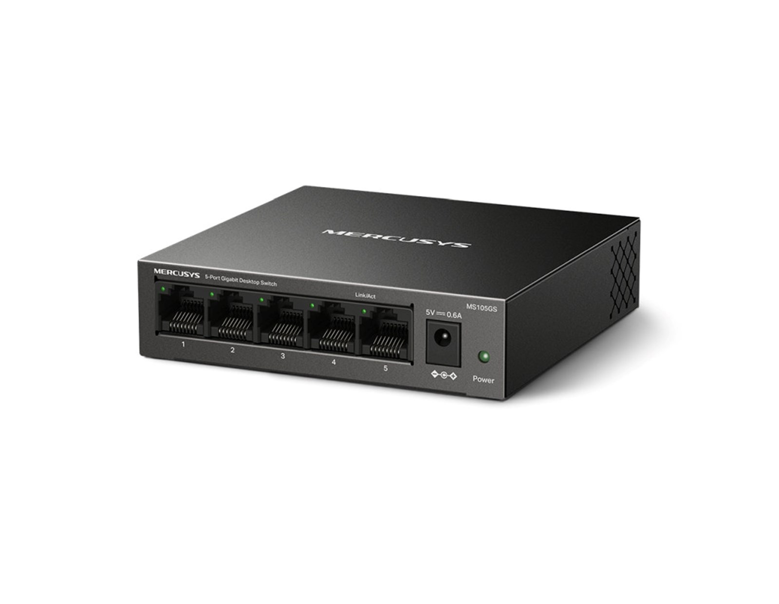 Mercusys MS105GS 5-Port Gigabit Desktop preklopnik (Switch) 5×10/100/1000Mbps, Plug & Play, Auto-Negotiation, Auto-MDI/MDIX, metalno kućište