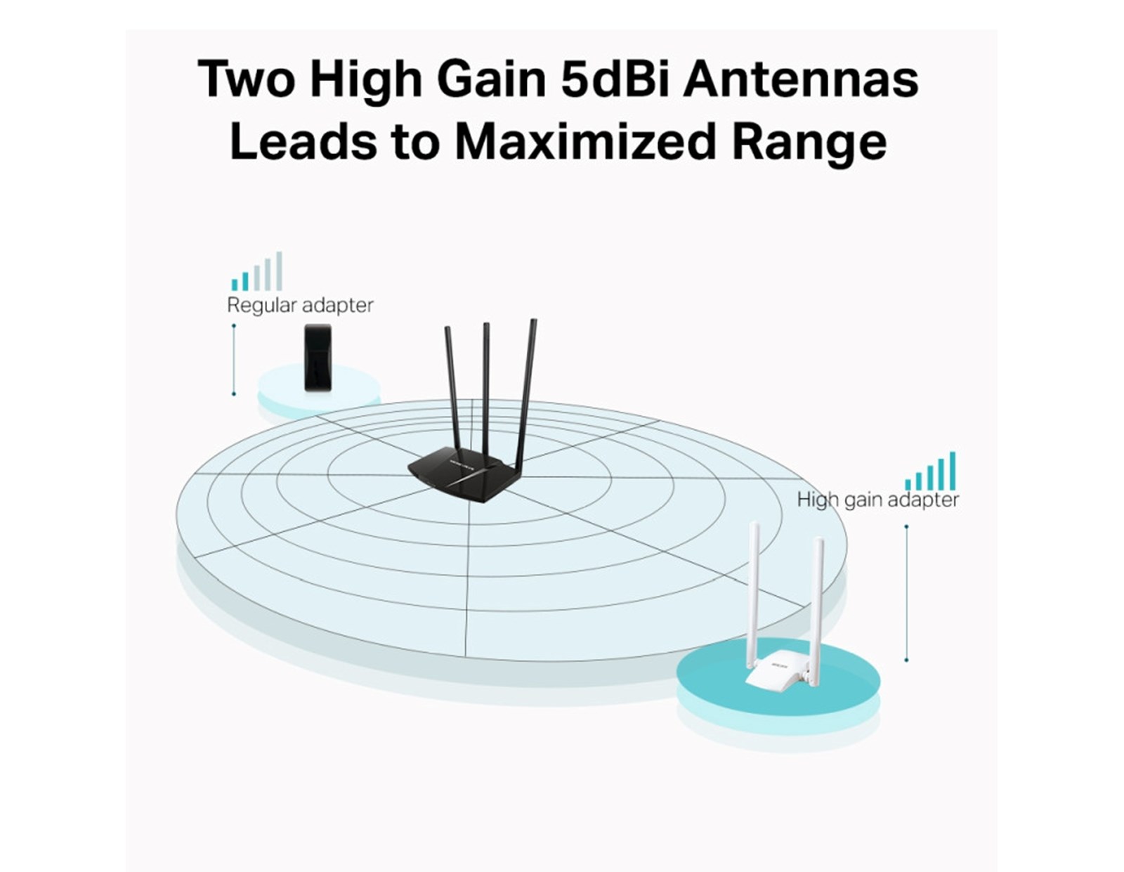 Mercusys MW300UH bežični High-Gain USB adapter, 300Mbps (2.4GHz), 802.11n/g/b, 2×2 MIMO, 2×5dBi antena