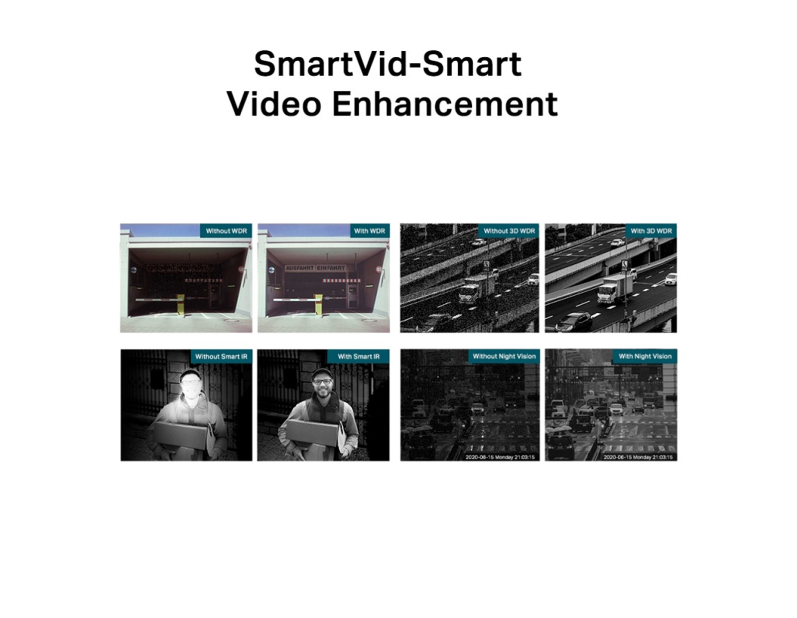 – Image Enhancement: BLC/3D DNR/HLC/SmartIR