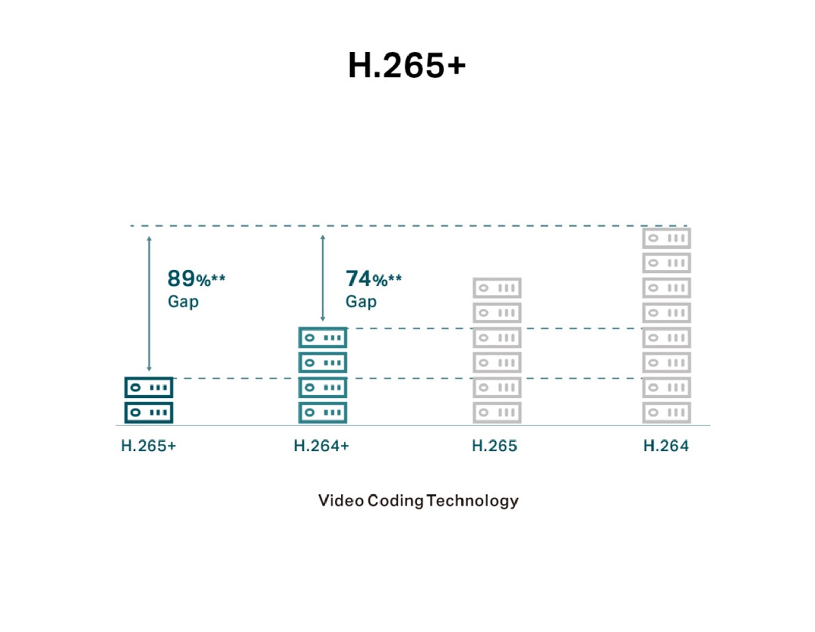 H.265+:- Without using any extra bandwidth, your cameras transmit compressed crystal-clear video to save disk space, ease network loads, and reduce monitoring costs without sacrificing image quality.