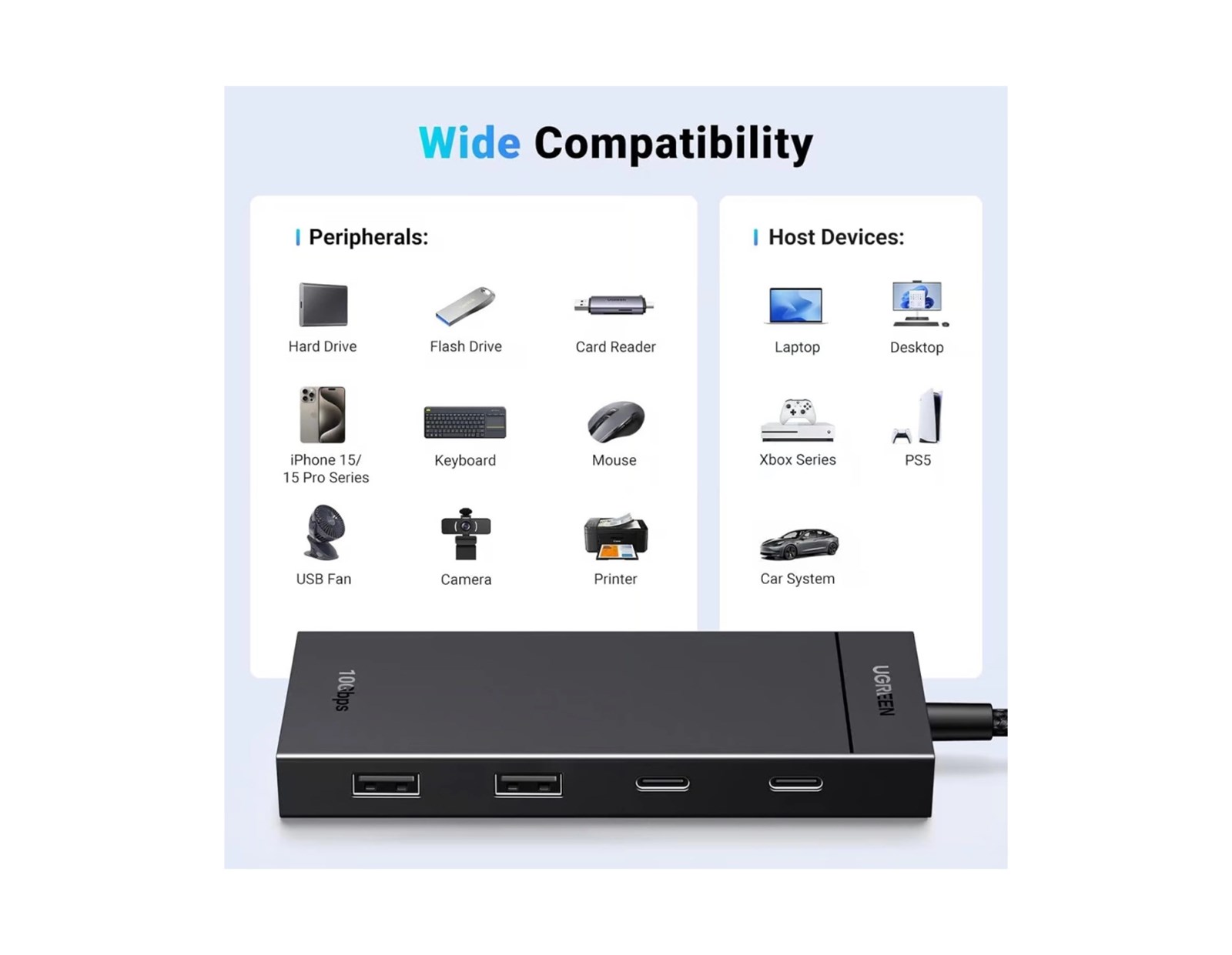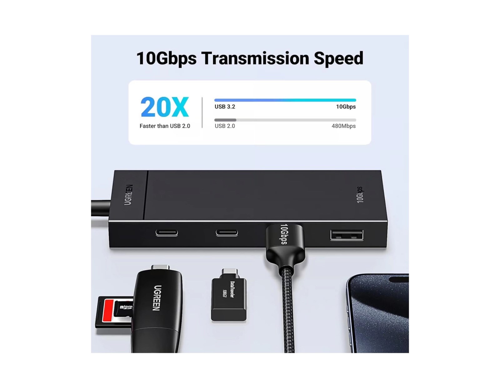 UGREEN 4-portni USB-C HUB na 2xUSB-A 3.2, 2xUSB-C 3.2, crni