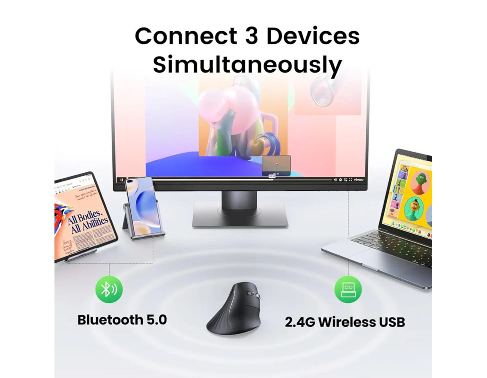 – UGREEN vertikalni miš dizajniran je imajući na umu široku kompatibilnost. Besprijekorno radi s Mac i Windows sustavima, kao i s raznim operativnim sustavima i uređajima. Ova fleksibilnost osigurava da se naš miš može prilagoditi radnom procesu i osobnim preferencijama bilo kojeg korisnika.