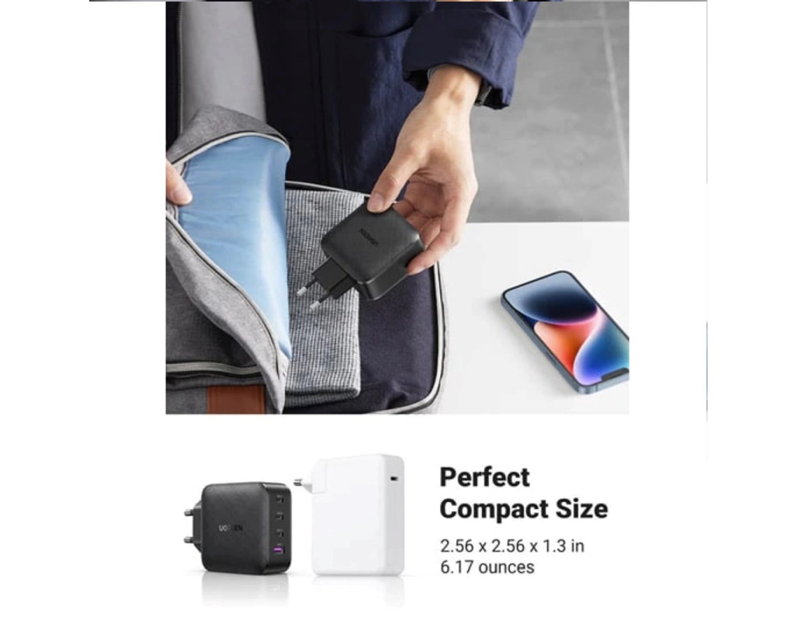 – Zbog korištene GaN tehnologije, manji je od konvencionalnih punjača. S dimenzijama 6,5 ??x 6,5 x 3,3 cm, možete ga ponijeti bilo gdje. S Gan tehnologijom, USB C punjač također može smanjiti potrošnju energije i povećati učinkovitost punjenja.