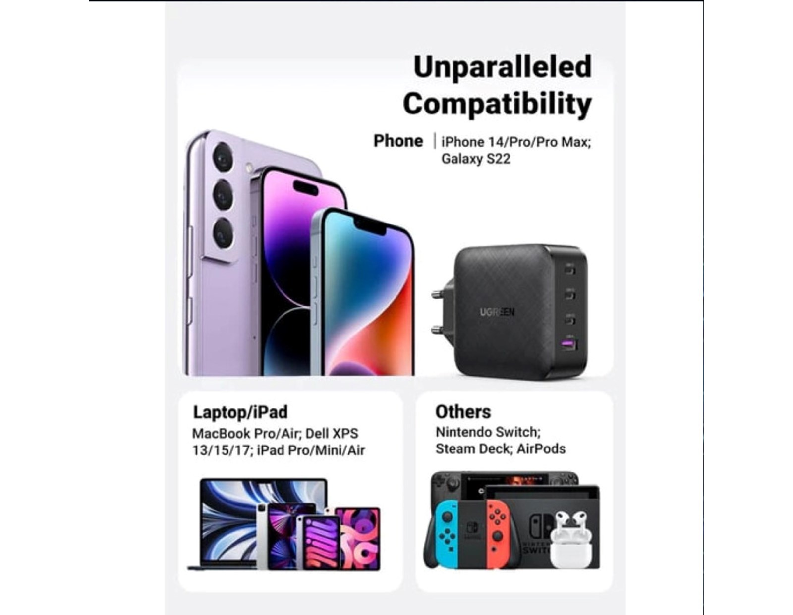 – USB C punjač kompatibilan je s gotovo svim uređajima, npr. Kompatibilan s MacBook Pro, MacBook Air 13″, HP Spectre, Huawei MateBook, NoteBook, iPad Pro i tabletima; iPhone 13 / 13 Pro / 13 mini / 13 Pro Max / iPhone 12 / 12 Pro / 11 / 11 Pro / 11 Pro Max, AirPods Pro, MagSafe i Galaxy S21 / S20 / S10 / Note 10, Huawei P40 / P30 Pro; Redmi Note 10; Poco M3, F3; Xiaomi Mi 10, Note 10 itd.