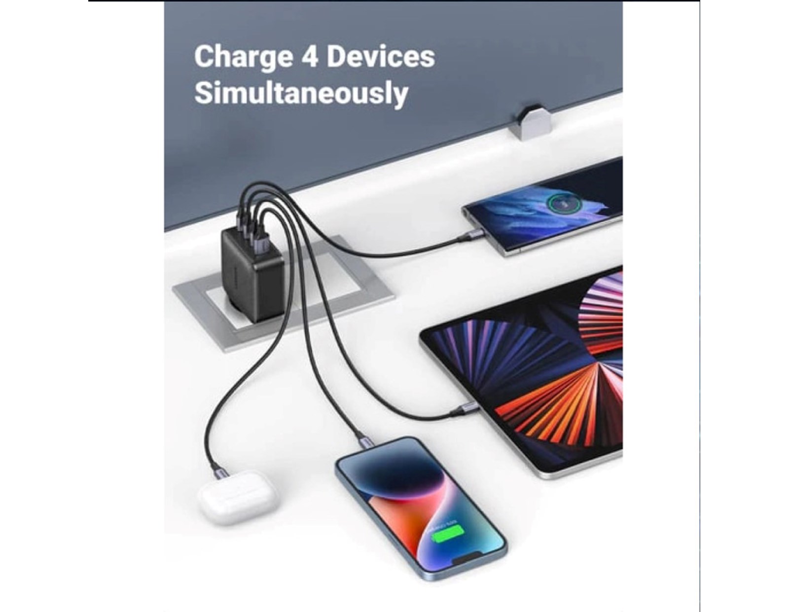 – USB C napajanje ima 3 USB C priključka i 1 USB A priključak, koji mogu distribuirati maksimalno 65 W za 4 uređaja. Za jedan USB C priključak može isporučiti maksimalno 65 W snage uređajima, a za jedan USB A priključak može isporučiti maksimalno 22,5 W. Možete brzo puniti različite uređaje istovremeno.