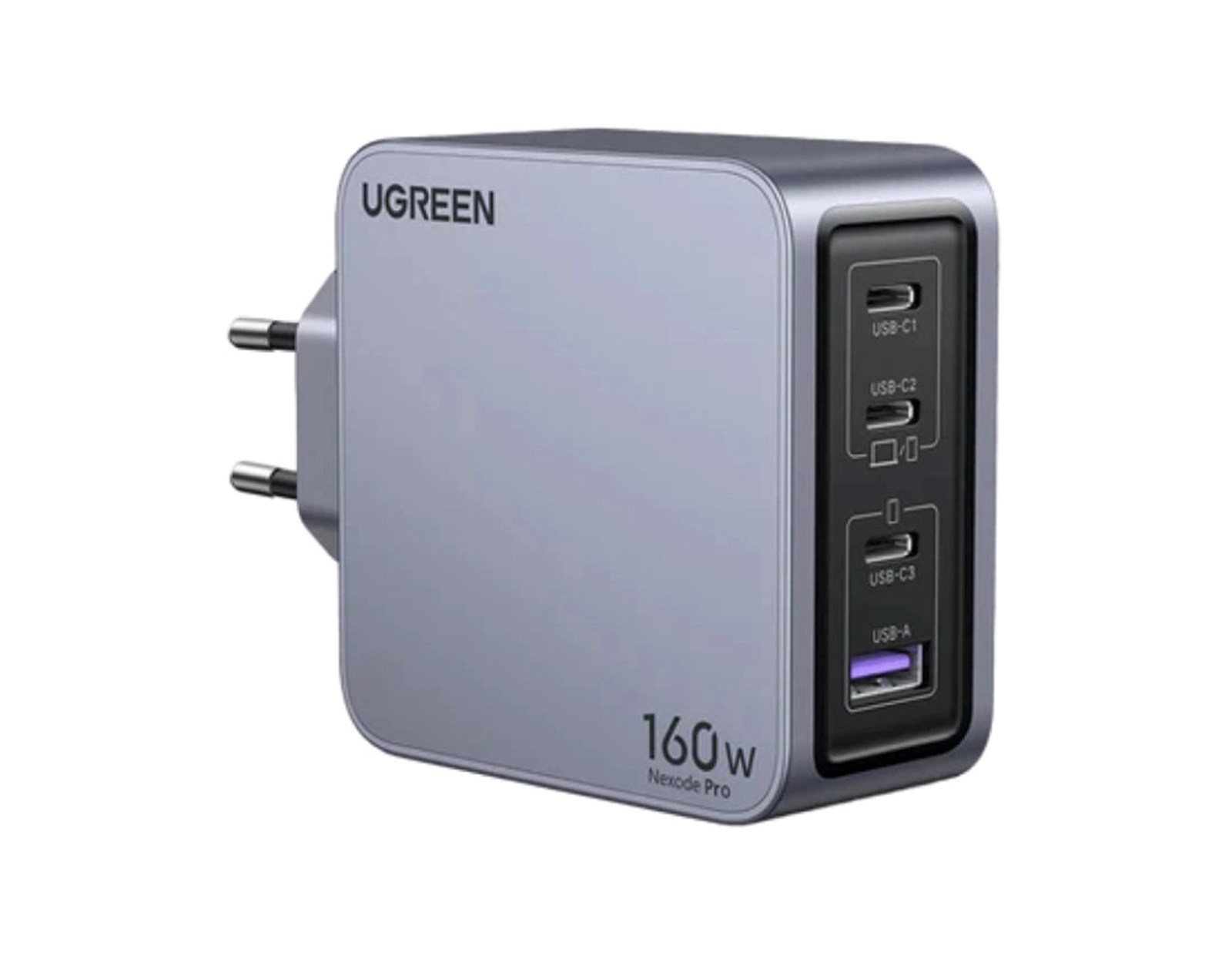 UGREEN Nexode Pro zidni punjač 160W, 3×USB-C/1×USB-A, USB-C kabel, GaN, sivi