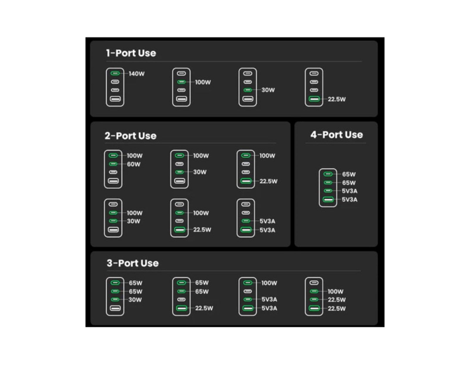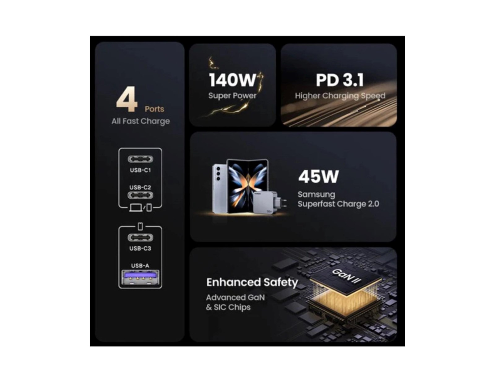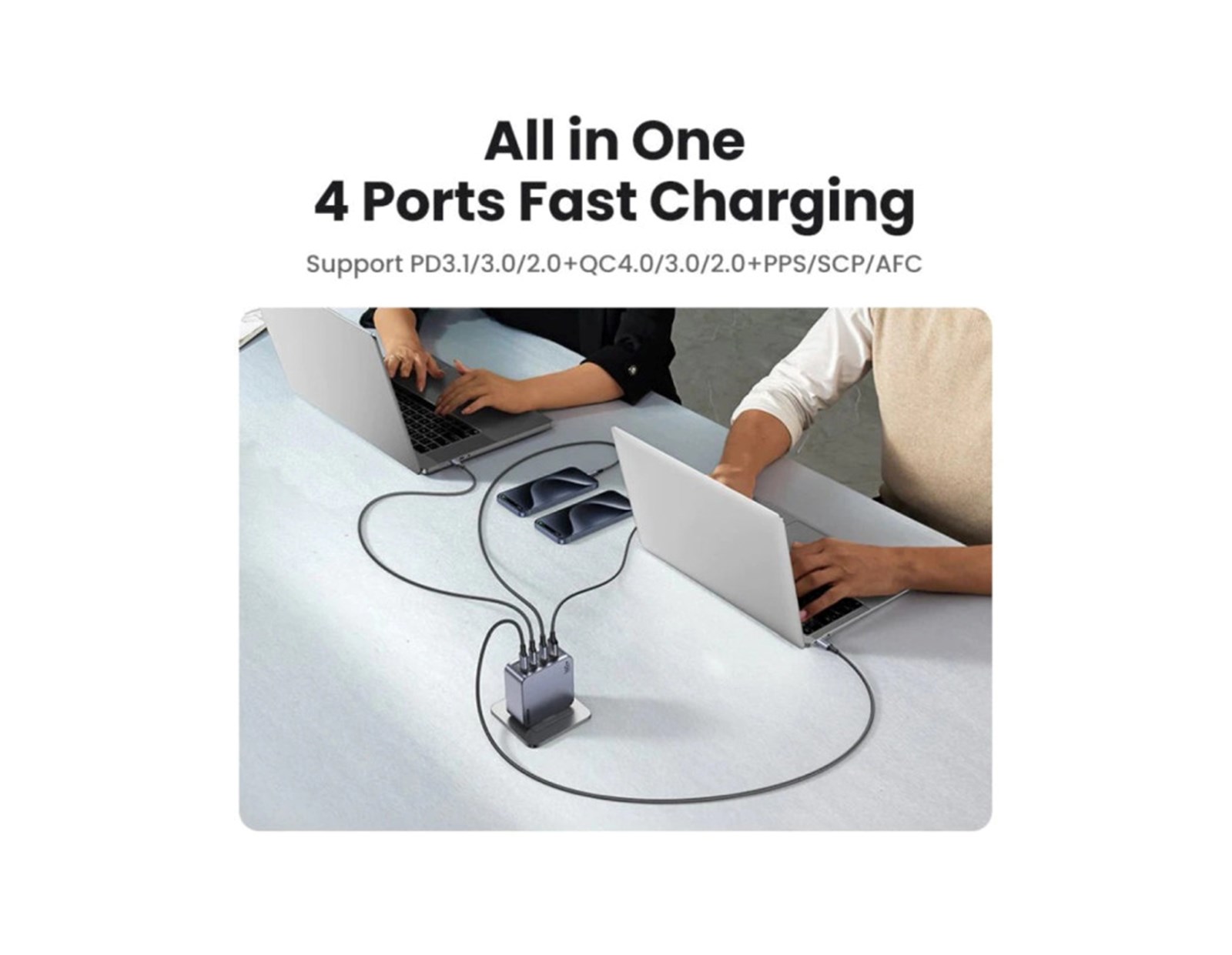 – Predstavljamo UGREEN 25877 Nexode 160 W 4-port GaN brzi punjač – vašeg novog neizostavnog pomoćnika u svakodnevnom životu. S ovim punjačem konačno možete zaboraviti na mnoge različite punjače za svaki uređaj. UGREEN Nexode vam omogućuje istovremeno punjenje do četiri uređaja, s neviđenom brzinom i učinkovitošću. Bez obzira trebate li brzo napuniti svoj pametni telefon, tablet, prijenosno računalo ili slušalice, UGREEN Nexode može sve.